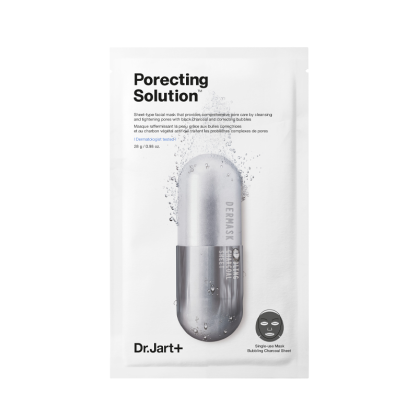 Кислородная маска для сужения пор Dr.Jart+ Porecting Solution с черным углем. Продукт прекрасно очищает поры от различных загрязнений и кожного сала, мягко отшелушивает мертвые клетки кожи и ускоряет регенерацию, нормализует кислотно-щелочной баланс и абсорбирует излишки себума. Растительные компоненты, входящие в состав маски, успокаивают, снимают покраснения, увлажняют и способствуют сужению пор.