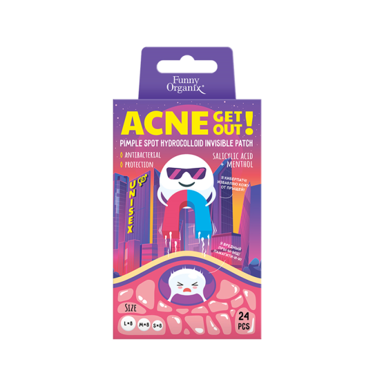 Funny Organix Гидроколлоидные точечные патчи-невидимки от акне с салициловой кислотой и ментолом" 24 шт, 3 размера.