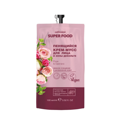 Пенящийся крем-мусс для лица Cafe Mimi Super Food Роза и Орегано 100 мл