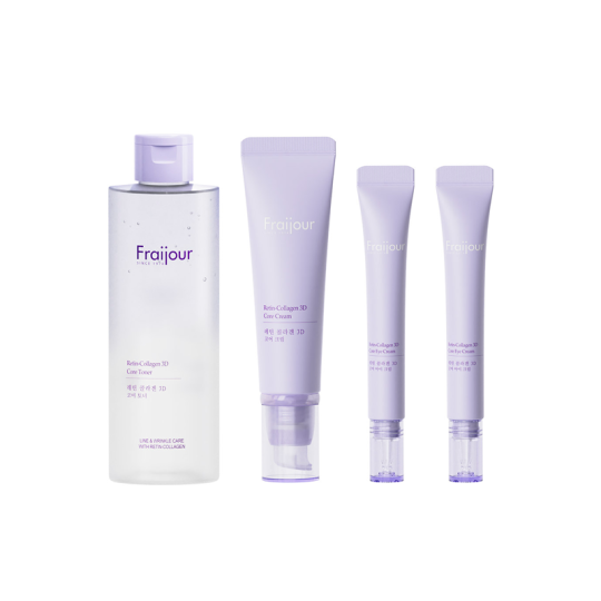 Fraijour Retin Collagen 3D Core Gift SetНабор для ухода за лицом (тонер для лица, крем для лица, крем для области вокруг глаз, тканевый мешочек) ТМ Fraijour1. Retin-Collagen 3D Core Toner - Тонер для лица ТМ FraijourУвлажняет и восстанавливает гидролипидный баланс кожи благодаря входящим в состав растительным экстрактам и гиалуроновой кислоте. Содержит комплекс Collagen 3d Core Matrix, состоящий из 8-ми видов коллагена, который способствует повышению эластичности и упругости кожи, обладает лифтинг-эффектом. Ретинол в новой липосомной форме действует на кожу более стабильно, ускоряя процессы регенерации и укрепляя структуру кожи. Объем 250 мл.