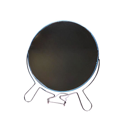 Зеркало настольное на подставке, двустронее. Одна из сторон имеет двойное увеличение, что позволяет детально рассмотреть необходимые участки лица.