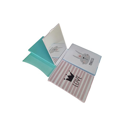 Компактное косметическое зеркало. Небольшие размеры, легко позволят поместиться в дамской сумочке и всегда быть у вас под рукой. Зеркало имеет прямоугольную форму. Закрывающаяся крышка защищает его от повреждений. В одной половинке расположено зеркало, а крышку можно использовать как подставку, что очень удобно при использовании. А также в комплекте с зеркалом идет маленькая расческа. Зеркало будет вам незаменимым помощником в домашних условиях, поездках и путешествиях. А так же прекрасно подойдет в качестве недорогого и полезного подарка для друзей и близких.