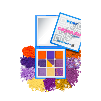 Палетка теней для век B.COLOUR PROFESSIONAL 9в1 с матовыми и шиммерными пигментированными текстурами и аквалайнером для создания стрелок. Яркость цвета, сияние и стойкость 24ч.
