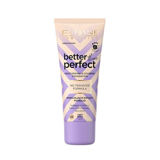 Стойкая увлажняющая тональная основа новой генерации Better Than Perfect с формулой NO TRANSFER – УСТОЙЧИВАЯ К СТИРАНИЮ – гарантирует безупречный макияж в течение всего дня, не оставляя следов на одежде или маске. Формула включает в себя активные компоненты, которые обеспечивают деликатный уход за кожей лица и выравнивают его тон, создавая натуральный, сияющий вид.
