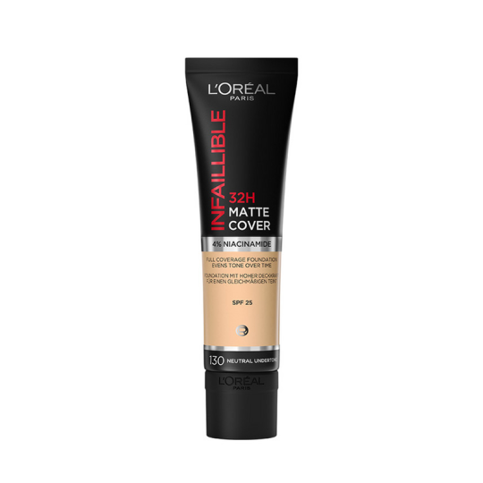 Матирующий cтойкий тональный крем Infaillible Matte Cover [Инфаибль Мат Кавер] 32 часа работает на твою кожу и заметно улучшает ее состояние. Он создает стойкое ровное матовое покрытие, без эффекта маски! Формула с 4% ниацинамида в составе выравнивает тон кожи и маскирует все виды кожных несовершенств. SPF 25. Невесомая текстура матирующего тонального крема легко наносится и равномерно распределяется на коже. Стойкий тональный крем Infaillible 32Ч Матовое Покрытие держится в течение всего дня, ощущается ультралегким и дышащим на коже.