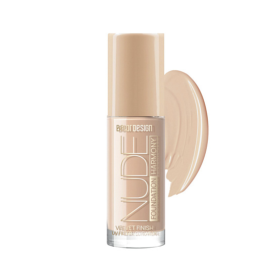 Тональный крем NUDE HARMONY действует в совершенной гармонии с кожей. Обладает стойким покрытием средней плотности, естественным образом разглаживает текстуру кожи, скрывает несовершенства и делает тон лица идеально ровным, оставляя бархатистый финиш на весь день. Одновременно с созданием совершенного внешнего вида продукт адаптируется под любой тип кожи, матирует Т-зону и увлажняет другие части лица, позволяя достичь уникального эффекта «второй кожи». Входящий в состав Бетаин и Витамин Е стимулируют выработку коллагена и поддерживают необходимый уровень влаги, благодаря которым кожа становится эластичной и шелковистой. УФ-фильтр защищает от вредного воздействия солнечных лучей. Без отдушек.