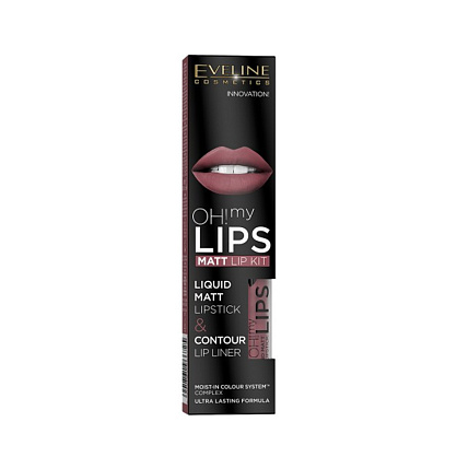Набор Помада для губ матовая + Карандаш для губ Eveline Cosmetics Oh! My Lips Kit Liquid Mat Lipstick & Contour Lip Liner т.06/12 4,5 мл/0,8 г
