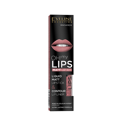 Набор Помада для губ матовая + Карандаш для губ Eveline Cosmetics Oh! My Lips Kit Liquid Mat Lipstick & Contour Lip Liner т.07/24 4,5 мл/0,8 г