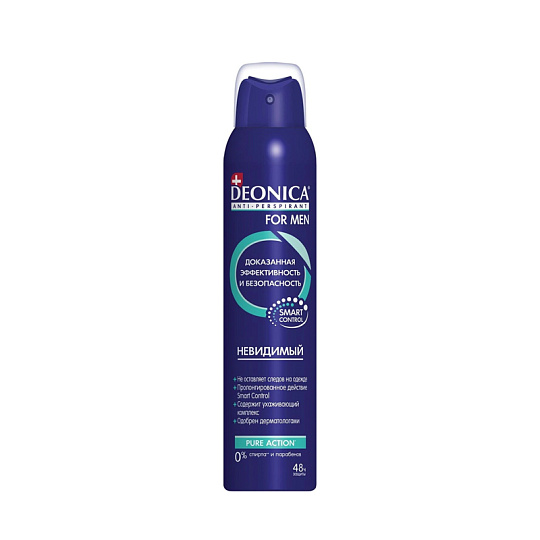 Уникальный мужской антиперспирант Deonica "Невидимый for MEN" благодаря специальной формуле не оставляет следов и пятен на черной, белой и цветной одежде и обеспечивает надежную защиту от пота и запаха на 48 часов.