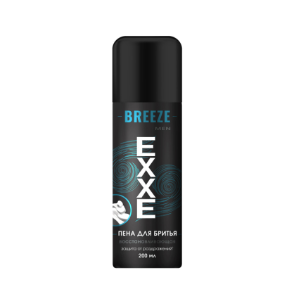 Пена для бритья Exxe Breeze Восстанавливающая. Новая обогащенная формула с алоэ обеспечивает: легкое скольжение бритвы без порезов и раздражений, защиту от сухости (формула без спирта), алоэ способствует смягчению и увлажнению кожи. Компактный алюминиевый баллон.