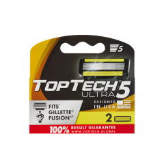 В упаковке вы найдете 2 сменные кассеты TopTech ULTRA 5, чтобы вы могли наслаждаться превосходным бритьем в течение длительного времени.