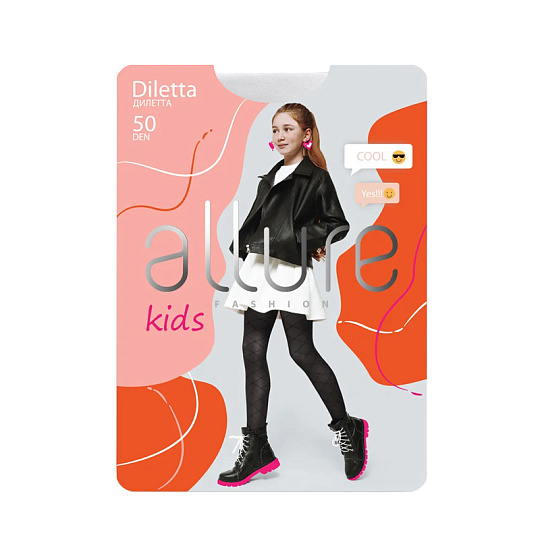 Детские колготки 50 ден с фактурным рисунком "ромбы". Укрепленный невидимый мысок, высокие штанишки и широкая плотная резинка на талии комфортно облегает фигуру и обеспечивает свободу движения для самых активных и подвижных. Для стильных маленьких модниц.