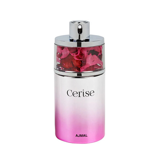 Ajmal Cerise – женский парфюм, который отличается изысканным цветочно-фруктовым ароматом. Он был выпущен в 2015 году арабской компанией Ajmal и представляет собой экстракт роскошной жизни, в котором ощущается ожидание романтических приключений и пьянящего чувства влюбленности. Обольстительный, оригинальный букет раскрывается невероятными дынно-малиновыми нюансами, которые гармонируют с сочными тонами клубники и ванили. Искрясь и раскрываясь грань за гранью, Ajmal Cerise медленно тает в пространстве, оставляя ощущение умиротворения и нежности. Он полностью соответствует концепции бренда, согласно которой: «Аромат - все, что необходимо для путешествия во времени, такова связь между памятью и запахом». Яркий Ajmal Cerise находится в роскошном флаконе – его верхняя часть украшена натуральными лепестками роз, законсервированными по особой технологии.