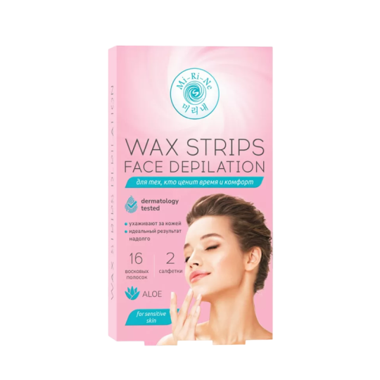Восковые полоски для депиляции для чувствительной кожи лица Mi-Ri-Ne Wax Strips Face Depilation Aloe 16 шт
