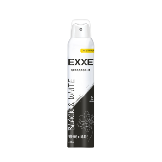 EXXE Женский дезодорант Черное и белое Black & White. Дезодорант с тонизирующим свежим ароматом. Активная формула – 48 часов защиты от запаха. Не оставляет белых пятен и следов на одежде. Защищает кожу и дарит свежесть надолго.