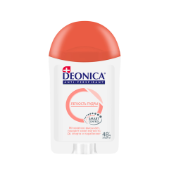 Почувствуйте непревзойденную легкость и свежесть с дезодорантом-антиперспирантом Deonica Легкость пудры. Он мгновенно высыхает, придавая коже невероятную мягкость и нежность, обеспечивая надежную защиту от пота и неприятного запаха до 48 часов. Натуральный бисаболол в составе, получаемый из аптечной ромашки, снимает раздражение, бережно заботясь о коже подмышек.