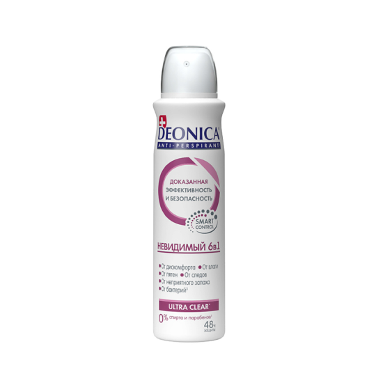 Эффективный антиперспирант DEONICA Невидимый 6в1 благодаря специальной формуле обеспечивает комплексную защиту от влаги, пятен и следов на одежде, бактерий, неприятного запаха.