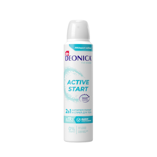 Женский дезодорант-антиперспирант Deonica Active Start 2в1 создан для тех, кто нуждается в особой высокоэффективной защите при повышенном стрессе и физических нагрузках. Уникальная формула спрея эффективно предотвращает потоотделение и устраняет неприятный запах, даря ощущение свежести до 72 часов. Средство обеспечивает бережный уход не только за кожей подмышек, но и всего тела, делая его безопасным для ежедневного использования.