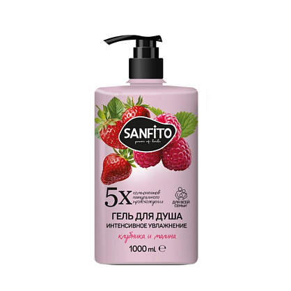 Гель для душа Sanfito Клубника и Малина Интенсивное Увлажнение 1000 мл