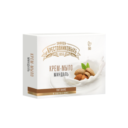 Туалетное крем-мыло «Заводъ Братьевъ Крестовниковыхъ» «Питание Миндаль» — это идеальный выбор для мягкого и бережного ухода за кожей. Благодаря натуральным компонентам в составе, оно не только тщательно очищает кожу, но и питает её, делая нежной и бархатистой.