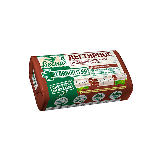 Мыло изготовлено по традиционным русским рецептам, содержит лечебный берестовый деготь. Оказывает профилактическое и лечебное действие при заболеваниях кожи.