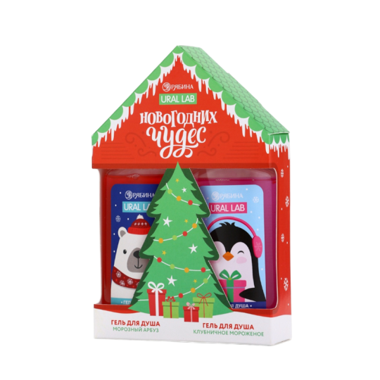 URAL LAB Набор Новогодних Чудес: Два Ароматных Геля для Душа (Морозный Арбуз и Клубничное Мороженое).