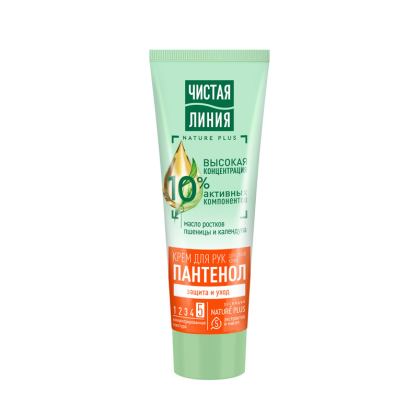 Крем для рук Защита и уход от экспертов Чистая Линия на 97% состоит из компонентов натурального происхождения*, имеет концентрированную текстуру и отлично подойдет для ухода за сухой кожей рук. В составе эссенция из 5 экстрактов и масел NATURE PLUS (экстракты вербены и пиона, масла миндаля, льна, оливы), пантенол, отвар трав, масло ростков пшеницы и протеины овса. 10%-я высокая концентрация активных компонентов.
