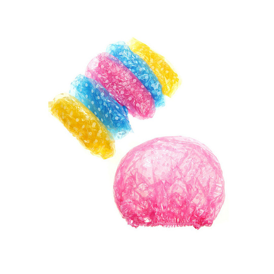 Универсальные шапочки для душа выполнены из прозрачного полиэтилена. Благодаря свойствам материала, шапочка абсолютно водонепроницаема. Также шапочки являются безразмерными. Окантовка резинкой одновременно позволяет надежно закрепить шапочку и не дает воде попасть под нее. Используются в парикмахерских, спа-центрах, банных комплексах.