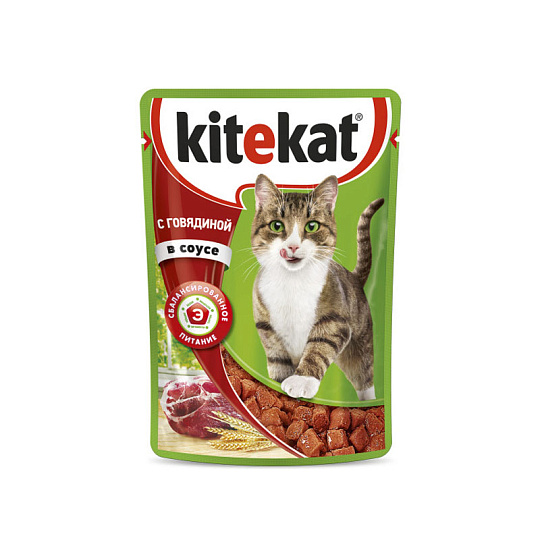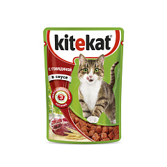 Такой обед точно понравится вашему любимцу! Энергия для игр и побед каждый день! Kitekat® «с говядиной в соусе» – порция сочных кусочков с говядиной, приготовленных по особому рецепту. В его основе – формула сбалансированного питания, которая содержит белки, минералы, витамины, таурин и животные жиры. Kitekat – это идеальный источник жизненных сил для кошки.