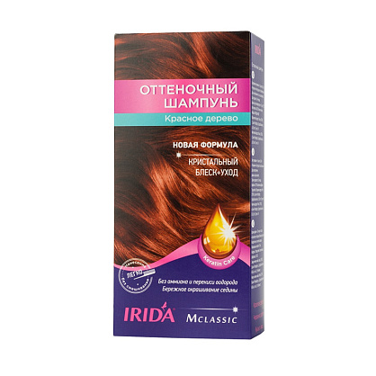 Шампунь «IRIDA M classic» в составе не содержит аммиак и перекись водорода. Оттеночный шампунь, содержит комплекс "Термозащита", защищает волосы при сушке феном. Шампунь «IRIDA M classic» обеспечивает длительную стойкость цвета, полученный оттенок выдерживает 12-15 процедур мытья головы. Оттеночный шампунь равномерно окрашивает волосы от корней до кончиков волос, превосходно закрашивает седину, благодаря простоте применения идеально подходит для домашнего окрашивания волос. Оттеночный шампунь содержит комплекс "KERATIN CARE", после окрашивания волосы приобретают роскошный и стойкий цвет, соблазнительный блеск, ухоженный вид и здоровое сияние. В 1 коробочке содержится 3 пакетика шампуня.