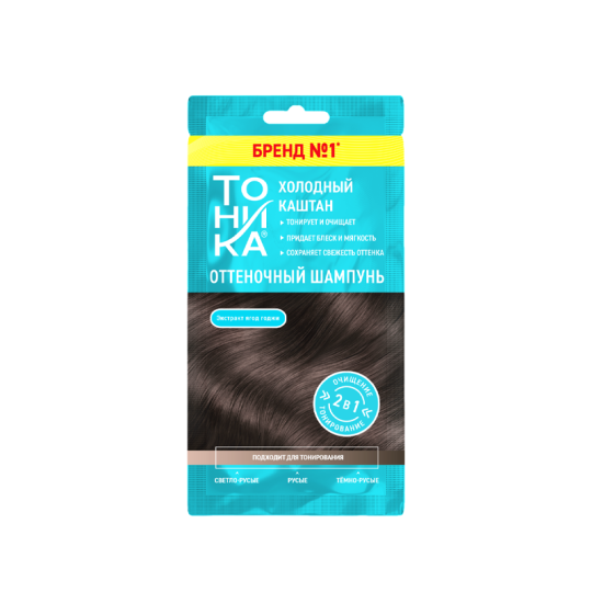 Элегантный и утончённый, холодный каштановый оттенок дарит волосам глубокий, насыщенный темно коричневый цвет с лёгким холодным подтоном. Подарите своим волосам идеальный уход с новыми оттеночными шампунями Тоника!