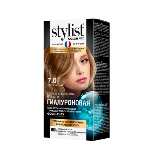 STYLIST COLOR PRO - это блестящий салонный уровень окрашивания в домашних условиях. Первая профессиональная стойкая крем краска для волос для домашнего использования с рекордным содержанием гиалуроновой кислоты и восстанавливающей технологией окрашивания GOLD-PLEX. Краска для волос- 1 шт., эмульсия 6% - 1 шт., бальзам - 1 шт., перчатки - 1 пара, инструкция - 1шт.