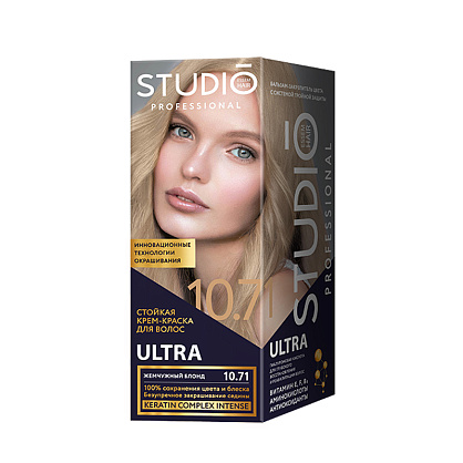 Стойкая крем-краска для волос Studio Ultra т.10.71 Жемчужный блонд 115 мл
