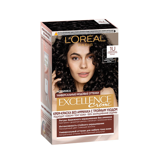 Крем-краска для волос L'Oreal Paris Excellence UNIVERSAL NUDES т.1U Черный 192 мл