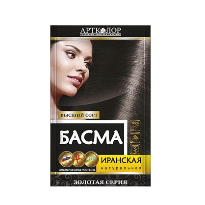 Иранская басма - натуральное, растительное средство для окрашивания волос в тёмные тона (от светло-каштанового до чёрного). Благодаря содержанию биологически активных веществ продукт оздоравливает волосы,укрепляет корни и стимулирует рост волос,придаёт волосам естественный блеск,улучшает структуру волос.