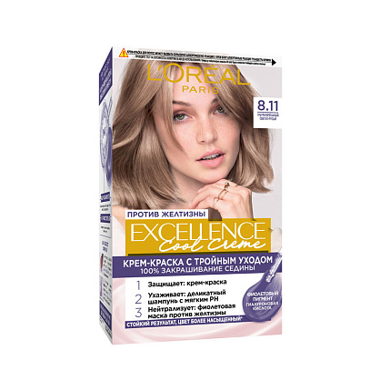 Стойкая крем-краска для волос L'Oreal Paris Excellence Cool Creme т.8.11 Ультрапепельный светло-русый 192 мл