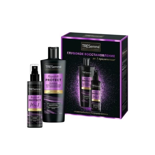 Идеальный выбор для глубокого восстановления и защиты волос. В набор входит шампунь восстанавливающий для волос и термозащитный спрей из коллекции Тресемме Repair&Protect.