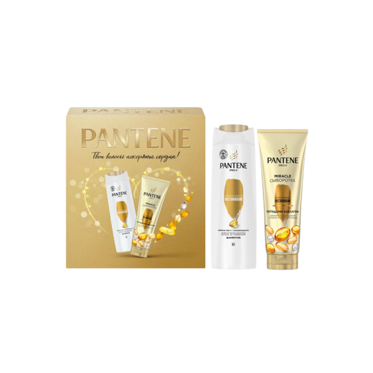 Сокровища PANTENE для красоты и здоровья волос! Женский набор Интенсивное Восстановление от PANTENE Pro-V (Пантин Про-Ви) для пошагового ухода за волосами. В набор входят два средства для ежедневного применения: шампунь для волос 250 мл и сыворотка 4в1 200 мл из коллекции Интенсивное Восстановление. Благодаря особой формуле без силиконов шампунь (ШАГ 1) мягко очищает и восстанавливает волосы от корней до кончиков, придавая им здоровый вид, мягкость и блеск. Питательная сыворотка-кондиционер 4 в 1(ШАГ 2) для глубокого восстановления поврежденных и ослабленных волос. Комплекс Pro-V, обогащенный укрепляющими липидами, защитными антиоксидантами и коллагеном. Кондиционирующая сыворотка для волос с тающей текстурой проникает глубоко в структуру волос и дарит им в 3 раза больше силы изнутри*. Формула интенсивного ухода помогает устранить видимые повреждения** за 1 применение, не утяжеляя волосы.