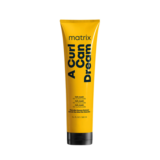 Профессиональная маска Matrix A Curl Can Dream для вьющихся и кудрявых волос с экстрактом меда Манука интенсивно увлажняет и питает пористые волосы, помогает сформировать красивый и упругий завиток. Формула маски не содержит минеральных масел. Аромат раскрывается нотами розы, пиона, морской соли, ландыша и жасмина.