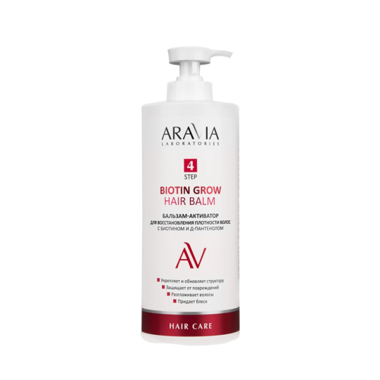 Интенсивное восстановление и укрепление волос с бальзамом-активатором Biotin Grow от ARAVIA Laboratories. Инновационная формула средства разработана специально для тонких, ослабленных волос, нуждающихся в дополнительном уходе и питании.