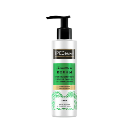 Добавь финишный штрих перед укладкой вьющихся и пушистых волос – нанеси несмываемый крем Тресемме Curls and Waves. Формула крема с гиалуроном и витамином Е увлажняет волосы и снижает пушистость. Не содержит силиконы и парабены, а значит, не утяжеляет локоны, поддерживает их упругость и естественный завиток. Серия разработана специально для вьющихся и пушистых волос. Формула крема сбалансирована для поддержания упругости локонов и естественного завитка.