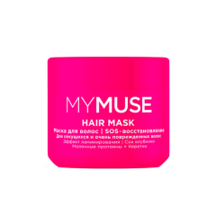 Маска для волос с кератином MY MUSE серия ""SOS восстановление"", подходит для смешанных, жирных и поврежденных волос. Маска MY MUSE для волос - лучший выбор для волос, нуждающихся в увлажнении, блеске, восстановлении и поддержке питанием, а так же придаст эффект ламинирования. Наша уникальная формула содержит мощную комбинацию сока клубники, кератина и молочных протеинов, чтобы питать и омолаживать ваши волосы изнутри и предать им жизненных сил, так же питательные компоненты увлажняют волосы, улучшают их структуру, придают блеск и защищают от ломкости.