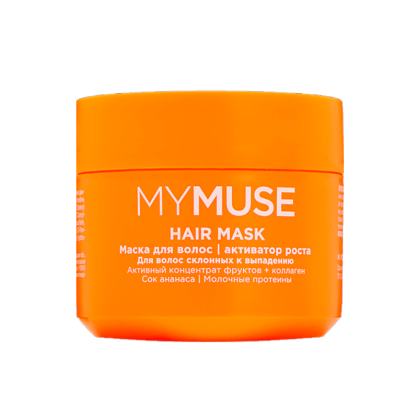 Профессиональная маска для волос MY MUSE "Активатор роста", подходит для волос склонных к выпадению, смешанных, жирных и поврежденных волос. Маска MY MUSE для волос 300мл - лучший выбор для волос, нуждающихся в увлажнении, блеске, восстановлении и поддержке питанием. Наша уникальная формула содержит мощную комбинацию активного концентрата фруктов, коллагена, сока ананаса и молочных протеинов, чтобы питать и омолаживать ваши волосы изнутри и предать им жизненных сил, так же питательные компоненты увлажняют волосы, улучшают их структуру, придают блеск и защищают от ломкости.
