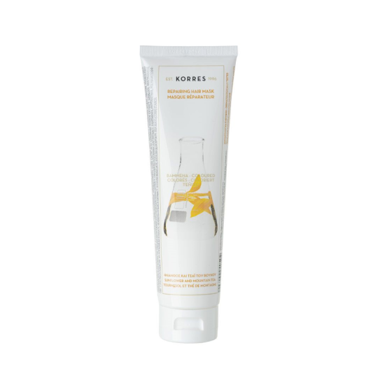 Korres использовал лучшие природные компоненты для того, чтобы сохранить результат окрашивания или химической завивки как можно дольше, а также помочь волосам восстановить структуру и пластичность. Благодаря составу, богатому полифенолами и растительными маслами, цвет и блеск волос сохраняется даже при частом мытье волос и укладках. Маска выполнена с применением натуральных природных экстрактов, поэтому ее действие будет обладать сильным эффектом даже на окрашенных и поврежденных волосах, потерявших блеск и силу в результате какого-либо химического воздействия. Главными восстановительными элементами являются органические экстракты подсолнечника, душицы, горного чая и майорана. Эти увлажняющие вещества способны вернуть локонам мягкость, блеск и былую силу.