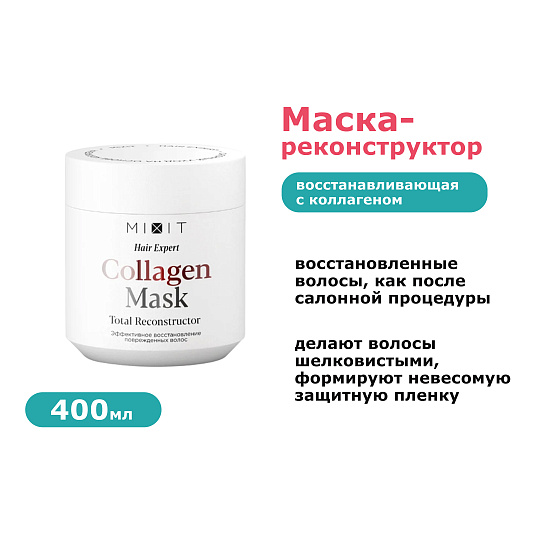 Маска-реконструктор для восстановления волос MIXIT Hair Expert Collagen Mask Total Reconstructor 400 мл