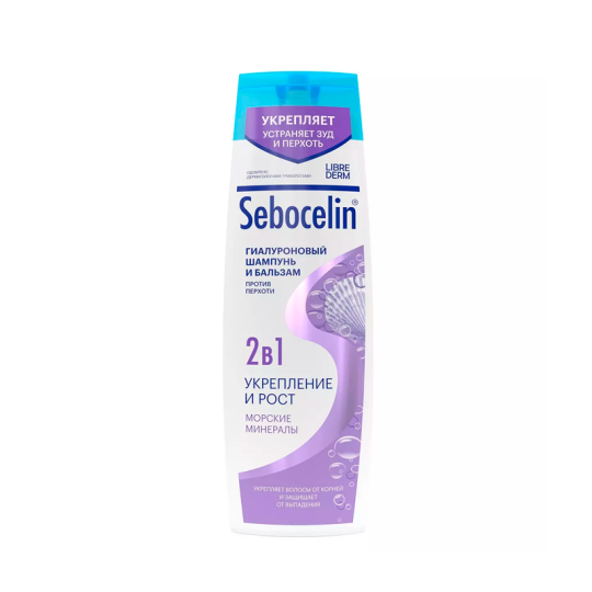 Гиалуроновый шампунь и бальзам 2 в1 против перхоти Sebocelin Морские Минералы Укрепление 400 мл