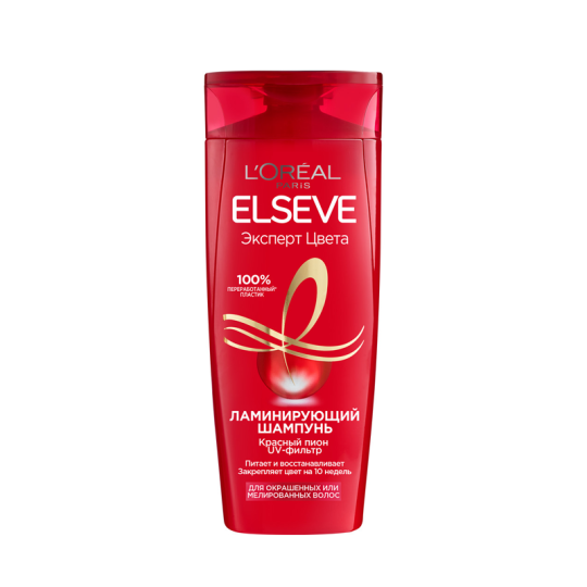 Ламинирующий шампунь для окрашенных или мелированных волос Elseve Эксперт Цвета Красный Пион 400 мл