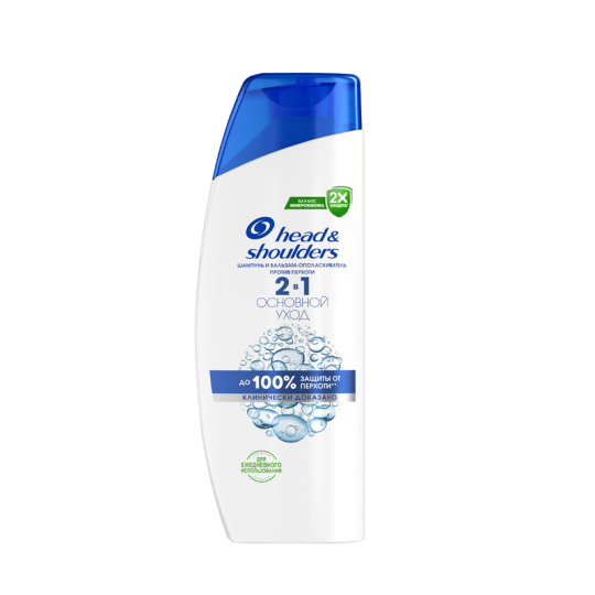 2в1 Шампунь и бальзам-ополаскиватель против перхоти Head & Shoulders (Хед энд Шолдерс) Основной Уход бережно ухаживает за волосами и кожей головы. Это средство от перхоти 2 в 1 эффективно очищает кожу головы и волосы, увлажняя их и придавая им ощущение свежести. 2в1 Шампунь и бальзам-ополаскиватель содержит активные действующие вещества — пиритион цинка и карбонат цинка — благодаря которым он обеспечивает до 100% свободы от перхоти*. Его усовершенствованная формула Derma & Pure протестирована дерматологами, pH-сбалансирована, усилена антиоксидантами и не содержит парабенов, фосфатов и парафинов. Head&Shoulders — бренд шампуней № 1 в мире**, который также заботится о планете: флакон на 40% состоит из переработанного пластика (за исключением крышки и этикетки) и пригоден для переработки.