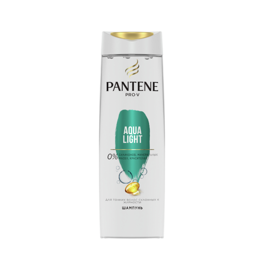 Шампунь PANTENE Pro-V (Пантин Про-Ви) Aqua Light идеально подходит для тонких волос, склонных к жирности. Благодаря уникальному комплексу Pro-V и легкому составу без силиконов, красителей и минеральных масел он деликатно очищает волосы, придавая им здоровый вид, легкость и подвижность. Подходит для окрашенных волос. Для достижения максимального эффекта используйте в сочетании с бальзамом-ополаскивателем или интенсивным бальзамом 3 Minute Miracle, а также спреем для волос из коллекции Aqua Light. Легендарный бренд PANTENE Pro-V заботится о здоровье и красоте волос женщин по всему миру уже более 75 лет. Сегодня Pantene — это богатый научный опыт ведущих экспертов и самые эффективные ингредиенты и питательные вещества, протестированные и одобренные Швейцарским Институтом Витаминов.