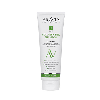 Бессульфатный шампунь биоламинирующий с коллагеном и комплексом аминокислот ARAVIA Laboratories Collagen Silk Shampoo 250 мл